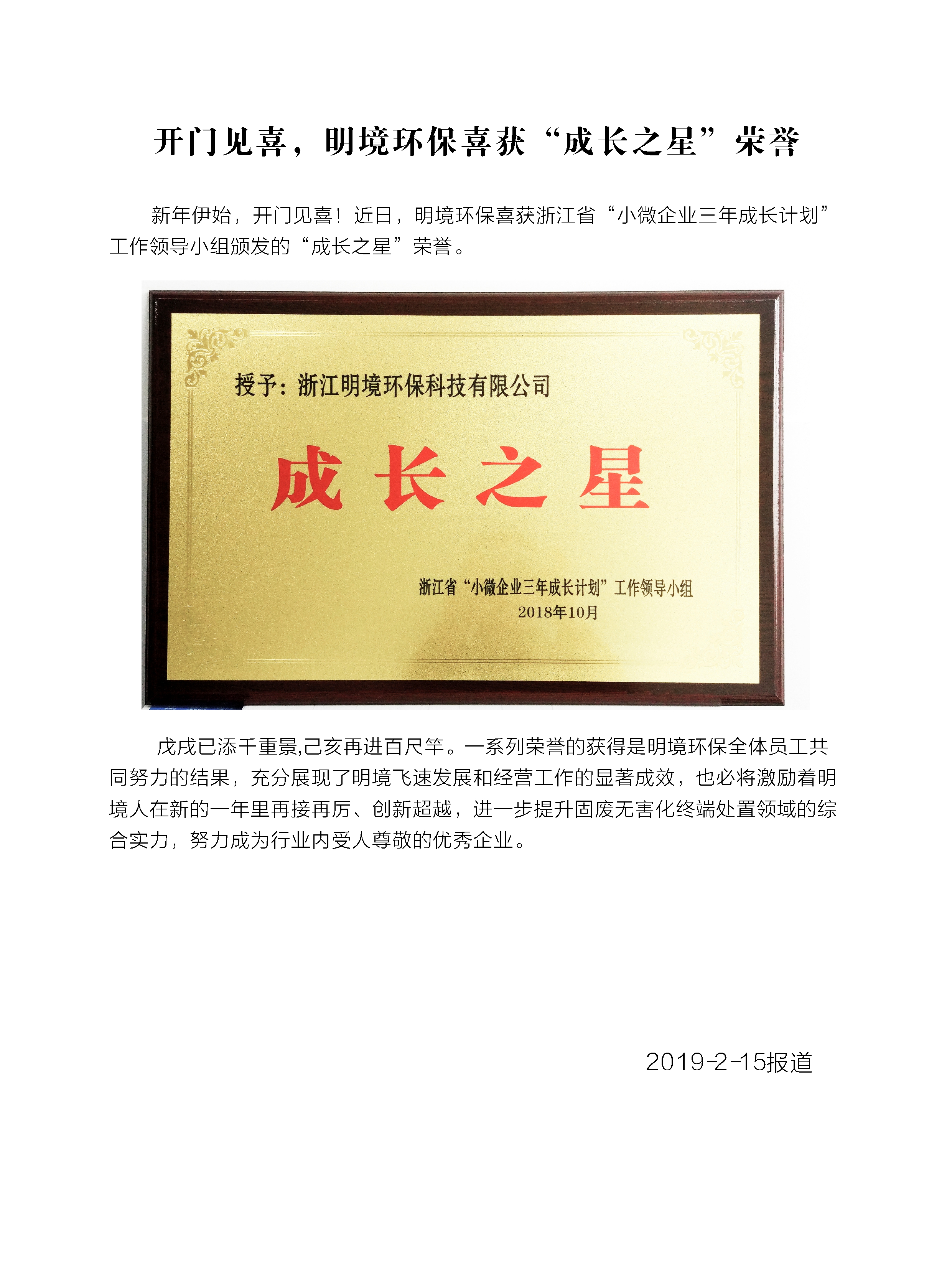 開門見喜,明境環(huán)保喜獲“成長之星”榮譽